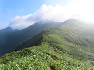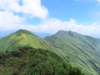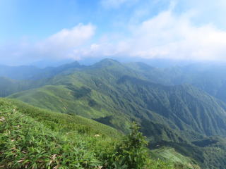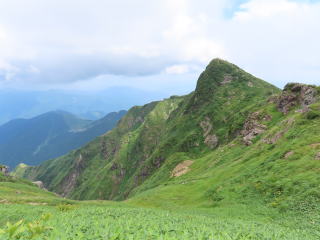 七ッ小屋山(1674.7m) 武能岳(1760m) 茂倉岳(1978m) 一ノ倉岳(1974.1m) 谷川岳 オキノ耳(1977m) トマノ耳(1963m) 2024年(令和6年)8月3日 清水峠避難小屋4:45…七ッ小屋山6:01…蓬峠7:08…武能岳8:11…茂倉岳10:44…一ノ倉岳11:51…オキノ耳13:23…トマノ耳13:47…天神平駅15:55…谷川岳インフォメーションセンター16:30=湯テルメ谷川