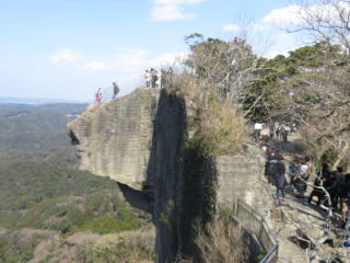 久里浜から東京湾フェリーで房総半島の金谷まで乗る。カモメやトビが船上で飛んでいる。金谷港の向こうにギザギザの鋸山が見える。観光案内所で登山マップをもらい、笹生精肉店のハムカツを食べながら歩く。きれいな案内板が各所にあり詳しい説明が書いてある。車力コースを登っていくが、足元の石は切った石を運ぶときにできた跡でへこんでいる。切り通しの道は手掘りでよくここまでできたもんだ。石切り場跡の絶壁階段を登ると、地球が丸く見える展望台、対岸の三浦半島が良く見えた。鋸山山頂は一等三角点と菱形基線測点があった。石切り場跡を見ながら進み、日本寺の百尺観音を拝観。地獄のぞきは大勢が並んでいたが、せっかくなので待って先端からのぞく。大仏を拝観し、電車に間に合うように早足で保田駅まで歩く。各駅停車を乗り継ぎ豊橋に戻る。