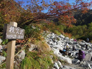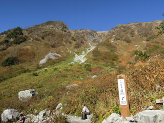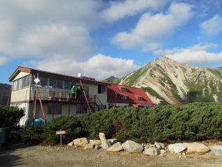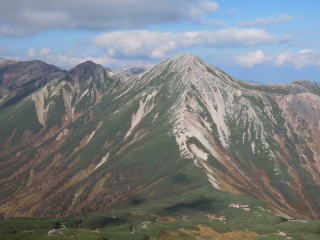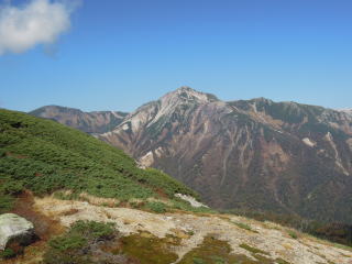 新穂高温泉の駐車場に前夜ついたがすでに満車、鍋平駐車場で仮眠し歩き始める。わさび平小屋では多くの登山者が休憩していた。秩父沢あたりから紅葉し始め、イタドリヶ原、シシウドヶ原を登っていく。鏡平では池にうつった槍ヶ岳が見えた。弓折乗越につくと県警のヘリコプターが山々を巡回していた。双六小屋は風が強く寒いぐらい。双六岳頂上はあいにくとガスが立ち込めてきたが、三俣蓮華岳に向かっているうちにガスもなくなり、黒部五郎岳や薬師岳が見えてきた。三俣蓮華岳からは水晶岳、鷲羽岳、槍ヶ岳、双六岳、黒部五郎岳、薬師岳、立山等の大展望。三俣山荘への下りは雪が残っており、気をつけながら下りる。さっそく外でビールを飲むが寒くなり、すぐに中に入る。この時期にしては満員だがなんとか一人一枚の布団で寝ることができた。