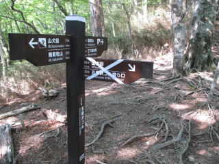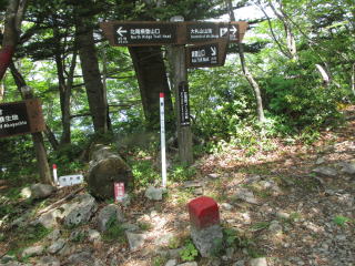 肩登山口の駐車場から登り始めると、宮標石の境界見出標があった。肩コース分岐から北尾根コースを進む。ここのシロヤシオはほとんで散っていた。北尾根分岐からすぐに大札山。二等三角点と祠があった。肩コース分岐への下りは工事用の鉄パイプで組んだ階段が続いていた。帰りに川根温泉に入っていると、雷が聞こえ、雨が降り出した。
