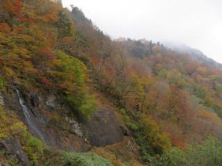 高妻山登山者用駐車場から歩き出す。ささやきの小径にはクマやハチ注意の看板があった。隋神門から奥社参道を進み、戸隠神社奥社で安全登山を祈願する。登山届を提出し、紅葉を楽しみながら登ると百閒長屋に到着。西窟を過ぎると鎖が登場。気を引き締めて登っていく。いよいよ核心部の蟻の塔渡り、這いつくばって少しずつ登る。渡り終えるとガスが上がってきた。戸隠山頂上で休憩。切り立った崖を見ながら一不動避難小屋に到着、暑くて喉が渇いた高妻山を思い出した。滑りそうな帯岩や滑滝を下り牧場につくと馬が出迎えてくれた。