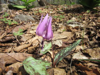今日はワンゲル部の若手といっしょに11人で舟伏山。東ルートは伐採作業のため、西ルートを登っていく。阿弥陀仏を過ぎると、ヒトリシズカやフデリンドウ、キランソウと花が次々に現れる。つづら折りの坂も木漏れ日と新緑がきれいで気持ちいい。稜線に出て休憩、バイケイソウ等の群生だ。カタクリもきれいに咲いている。小舟伏山を過ぎると樹間から能郷白山が見える。舟伏山頂上に到着、暑いので木陰で昼食。お目当てのイワザクラを見に東ルートを進むと残雪があった。しばらく下った岩にイワザクラが咲いていた。桜峠まで下りルートをどうしようか悩んでいると、他の登山者が伐採ルートを進むので、我々もまっすぐ下っていく。伐採作業の道は狭くなっていて慎重に下る。武芸川温泉でさっぱりして帰る。
